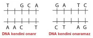 Karşılıklı iki nükleotid kaybolursa DNA kendini onaramaz. Buraya hangi nükleotidin geleceği belli değildir.