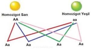 Farklı özellikteki iki arı dölün çaprazlaması sonucu oluşan bezelyeler %100 melez ve %100 sarıdır.
