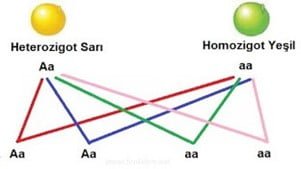 Soru 2: Melez sarı iki bezelyenin çaprazlaması sonucu oluşacak bezelyelerin fenotip ve genotiplerini bulunuz?